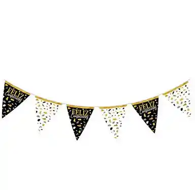Banderola Metalizada Feliz Cumpleaños Terrazo Dorado Negro 3.6 MT Sempertex