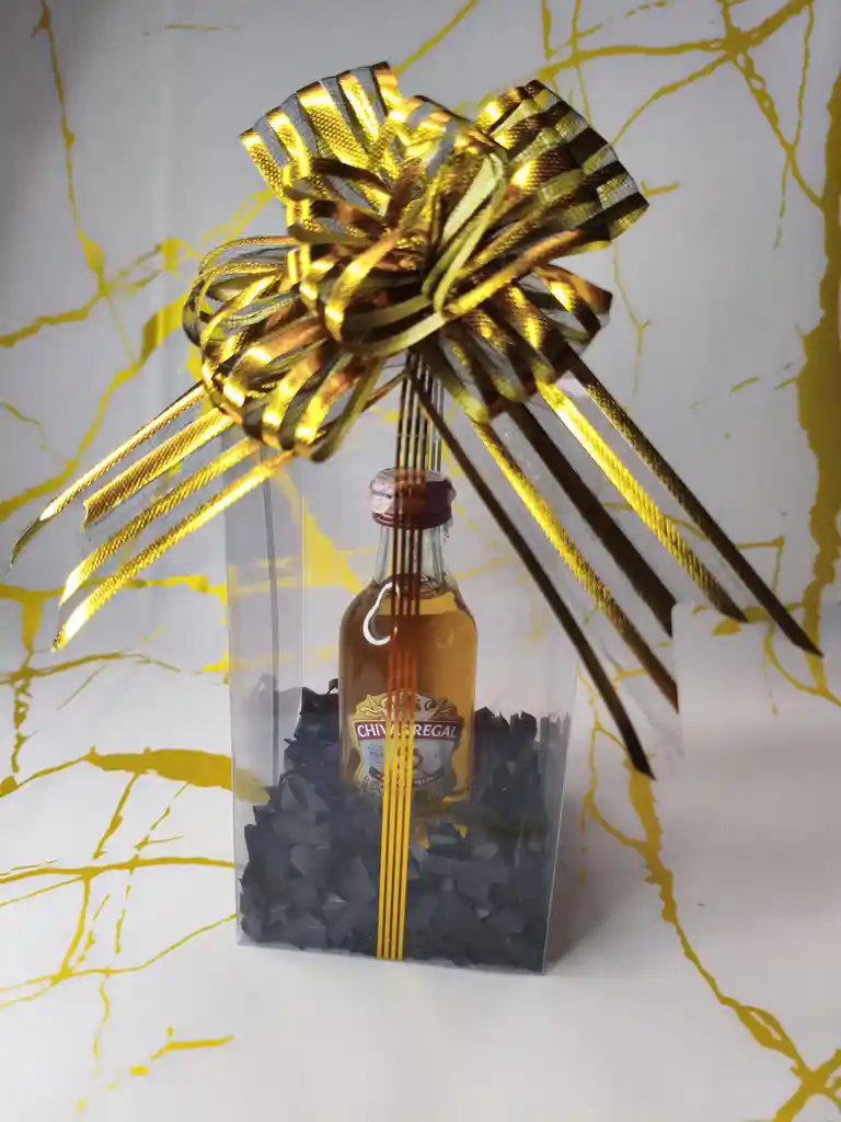 Sorprende con un exclusivo detalle premium, cuidadosamente presentado en una elegante caja de diseño sofisticado. Este toque distintivo es perfecto para sorprender a esa persona, dejando una impresión memorable y llena de estilo. En Bandido | Liquors & Detalles, te damos la mejor experiencia y momentos que ni el más buscado se atrevería a olvidar. Porque cada detalle, cada sorbo y cada momento están hechos para robarte una sonrisa y dejar huella. Aquí, los pequeños tesoros, son grandes momentos. Contiene: Whisky Chivas Regal 12 Años 50 ml