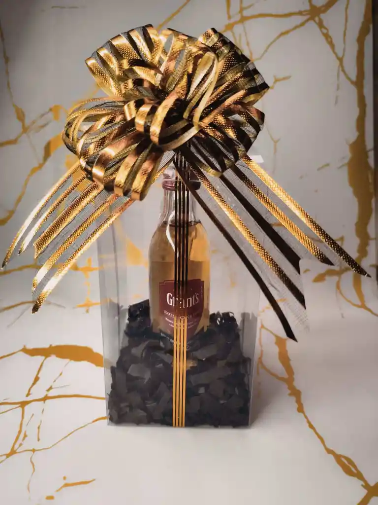 Sorprende con un exclusivo detalle premium, cuidadosamente presentado en una elegante caja de diseño sofisticado. Este toque distintivo es perfecto para sorprender a esa persona, dejando una impresión memorable y llena de estilo. En Bandido | Liquors & Detalles, te damos la mejor experiencia y momentos que ni el más buscado se atrevería a olvidar. Porque cada detalle, cada sorbo y cada momento están hechos para robarte una sonrisa y dejar huella. Aquí, los pequeños tesoros, son grandes momentos. Contiene: Whisky William Grant's 50 ml