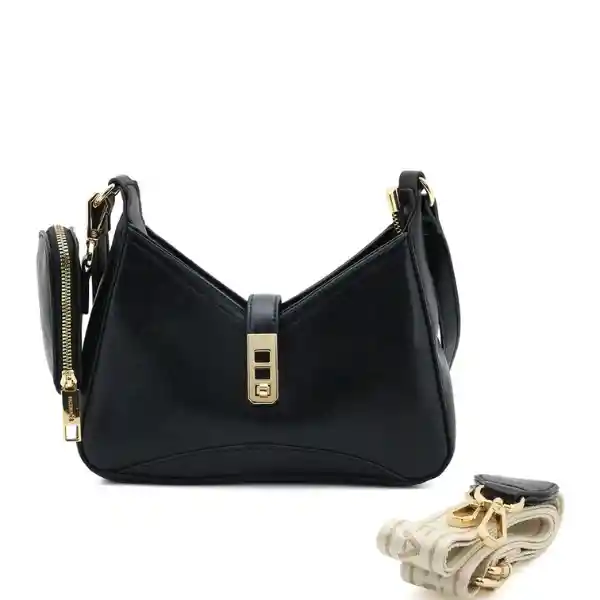 Bandolera pequeña con textura lisa y diseño estructurado con cierre frontal decorativo en herraje dorado. Incluye un práctico monedero lateral removible cargadera corta y una cargadera larga ajustable con detalles estampados, ideal para llevarlo al hombro o cruzado, elaborada en sintetico con forro interno en tela, garantía de 2 meses directamente con el vendedor en cierres, herrajes y costuras