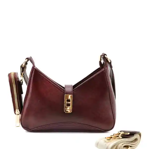 Bandolera pequeña con textura lisa y diseño estructurado con cierre frontal decorativo en herraje dorado. Incluye un práctico monedero lateral removible cargadera corta y una cargadera larga ajustable con detalles estampados, ideal para llevarlo al hombro o cruzado, elaborada en sintetico con forro interno en tela, garantía de 2 meses directamente con el vendedor en cierres, herrajes y costuras