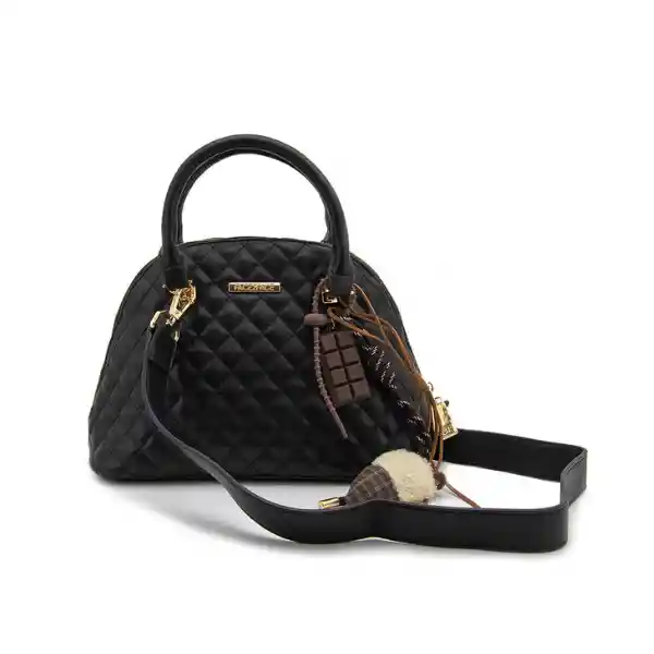Bandolera mediana con textura capitoneada y Charm decorativo, Cuenta con doble asa de mano y correa ajustable y removible para usarlo también como bandolera, elaborada en sintetico con forro interno el tela, bolsillo monedero y herrajes metalicos dorados, garantía de 3 meses directamente con el vendedor en cierres, herrajes y costuras