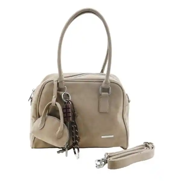 Bandolera rectangular grande con textura piel de durazno placa decorativa plateada, Incluye una cargadera corta para uso de mano y una correa larga, ajustable y extraíble que se sujeta a los laterales, permitiendo llevarlo cruzado o al hombro, cierre superior en cremallera, charm en forma de mini bolso y llavero colgante en el lateral en forma de cuerdas trenzadas, elaborado en sintetico con forro interno en tela y bolsillo monedero,garantía de 2 meses directamente con el vendedor en cierres, herrajes y costuras