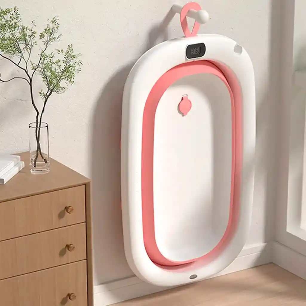 Bañera plegable que incluye termómetro para visualizar la temperatura del agua. Características: Termómetro para control de temperatura de agua. Fácil despliegue. Cómoda y ahorradora de espacio. Desagüe incluido. Disponible en colores azul o rosado.
