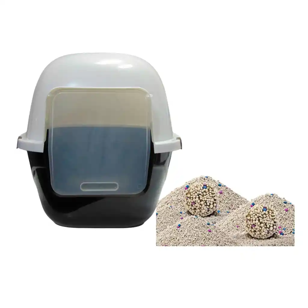 Baño Arenero GRANDE para gatos Mas 6 Kg De Arena Importada Baño Arenero Grande para gatos Este tipo de baño iglu es ideal para que sus gatos entre a hacer sus necesidades de manera fácil, al ser un baño cerrado retiene gran parte del olor, tiene una puerta amplia para que el gato pueda entrar y salir sin ningún problema, tiene un amplio espacio interior Al momento de la limpieza se deben retirar los seguros para retirar la arena. Etapa : Cachorros y Adultos Material : Plástico Tamaño del Baño Profundidad: 41 Cm Alto: 47 Cm Ancho 36 Cm Tiene Manija Cuatro seguros 1 Bolsa de Arena Importada por 6 Kilogramos INSTRUCCIONES DE USO: Empieza con una caja de arena para gato limpia y agrega Arena Corriente Scoopable cumpling Arena de gato de 3 a 4xm. remueve los terrones duros con una pala diariamente y depositalos en una basura no desechable. Después de aproximadamente 4 semanas, dependiendo en el número de gatos usando la arenera y la condición en que se limpie, deposita toda la arena en una basura, limpia la caja y sécala, para luego agregar nuevamente arena hasta tener una altura de 3 a 4cm. de Arena corriente Scoopable Cumpling. Para minimizar las huellas afuera de la arenera, pon un tapete alrededor de la arenera. PRECAUCIÓN: La arena de gato no se puede tirar en el inodoro o cualquier sistema séptico, esto puede obstruir las tuberías y afectar la calidad del agua. No deposites las sobras o basura de la arena de gato en el jardín o en una pila de arena o tierra. No uses este producto como una ayuda de la tracción, ya que se vuelve resbaladizo cuando está mojado. Lavarse bien las manos después de haber manipulado la arena