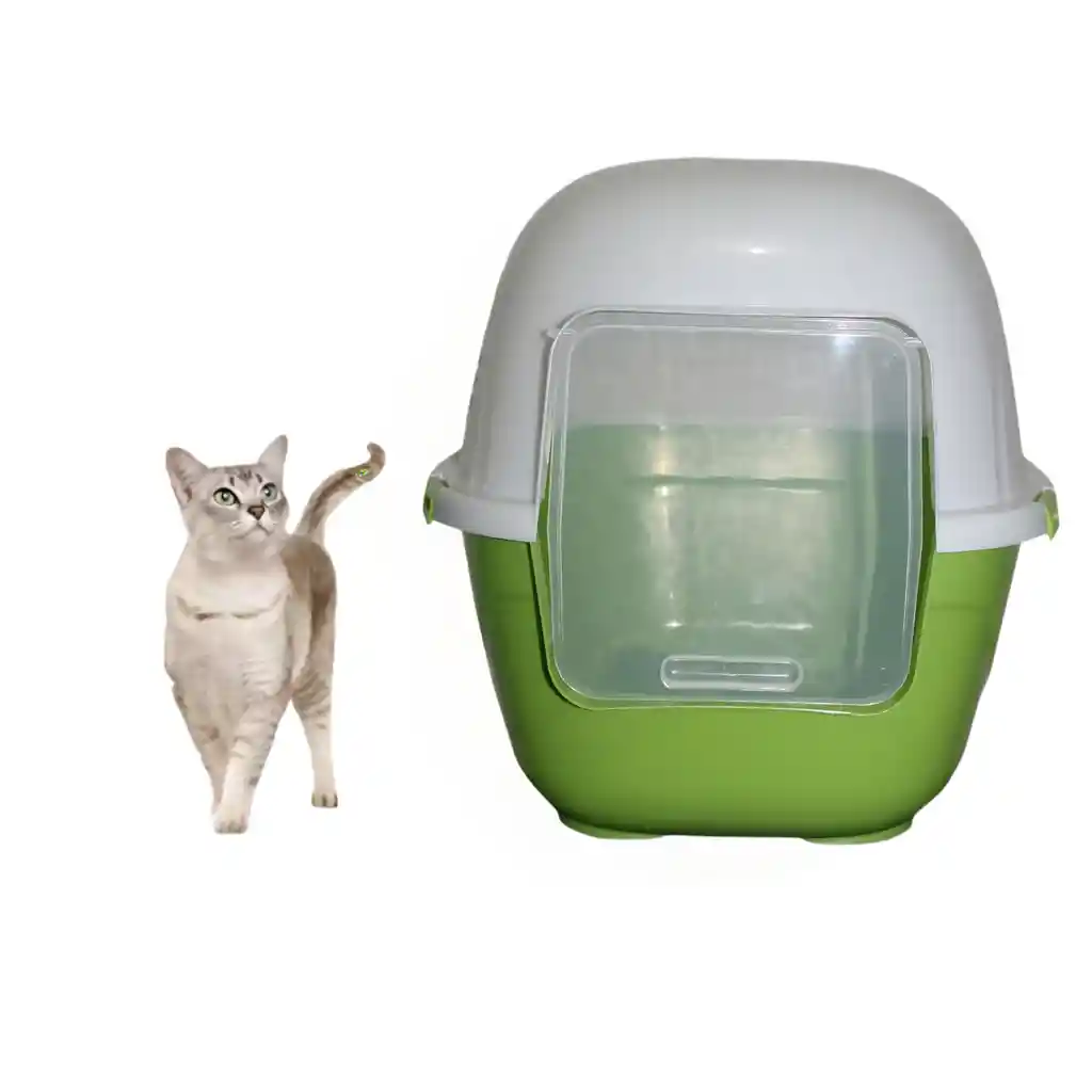 Bienvenido somos Hally Pets tu mejor aliado para el cuidado de tu hijo Perruno y/o Gatuno. Baño Arenero Grande para gatos Este tipo de baño iglu es ideal para que sus gatos entre a hacer sus necesidades de manera fácil, al ser un baño cerrado retiene gran parte del olor, tiene una puerta amplia para que el gato pueda entrar y salir sin ningún problema, tiene un amplio espacio interior Al momento de la limpieza se deben retirar los seguros para retirar la arena. Etapa : Cachorros y Adultos Material : Plástico Tamaño del Baño Profundidad: 51 Cm Alto: 44 Cm Ancho 42 Cm Tiene Manija Cuatro seguros Tamaño de la Puerta Ancho: 22 Cm Alto: 22 Cm