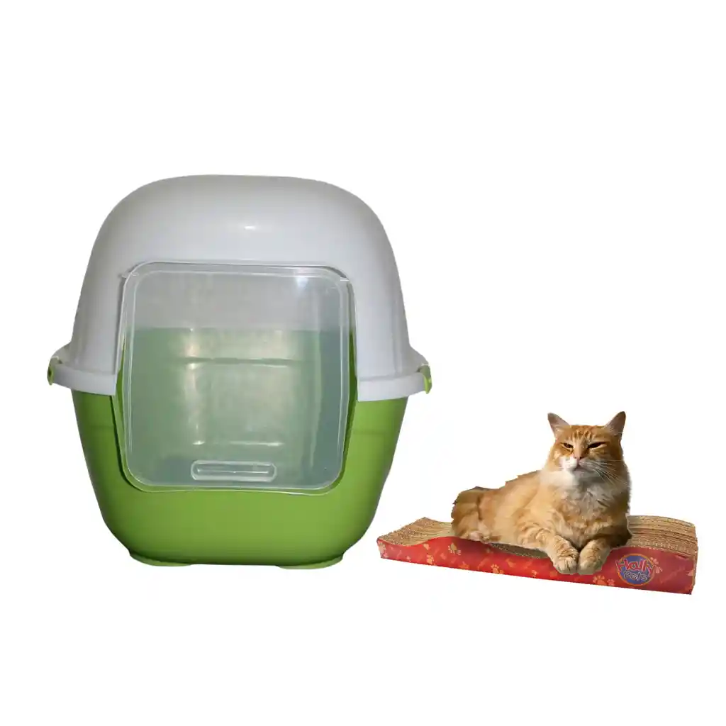 Baño Arenero Gigante para gatos Mas Rascador para Gatos en Carton Este tipo de baño iglu es ideal para que sus gatos entre a hacer sus necesidades de manera fácil, al ser un baño cerrado retiene gran parte del olor, tiene una puerta amplia para que el gato pueda entrar y salir sin ningún problema, tiene un amplio espacio interior Al momento de la limpieza se deben retirar los seguros para retirar la arena. Etapa : Cachorros y Adultos Material : Plástico Tamaño del Baño: Gigante Profundidad: 63 Cm Alto: 56 Cm Ancho 54 Cm Tiene Manija Cuatro seguros Tamaño de la Puerta Ancho 28 Cm Largo 28 Cm Posición de la puerta, desde el suelo hasta la parte inferior de puerta Para el Grande 14.5 cm