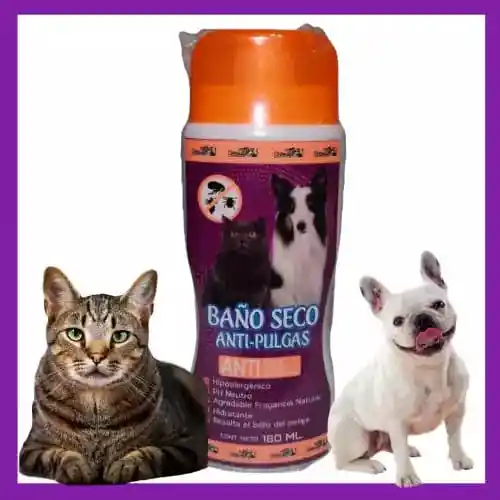 Baño Seco Insecticida con D-Fenotrina elimina pulgas y garrapatas sin necesidad de agua. Fórmula sin parabenos ni sal, ideal para el cuidado seguro de perros y gatos. ¡Limpieza y protección