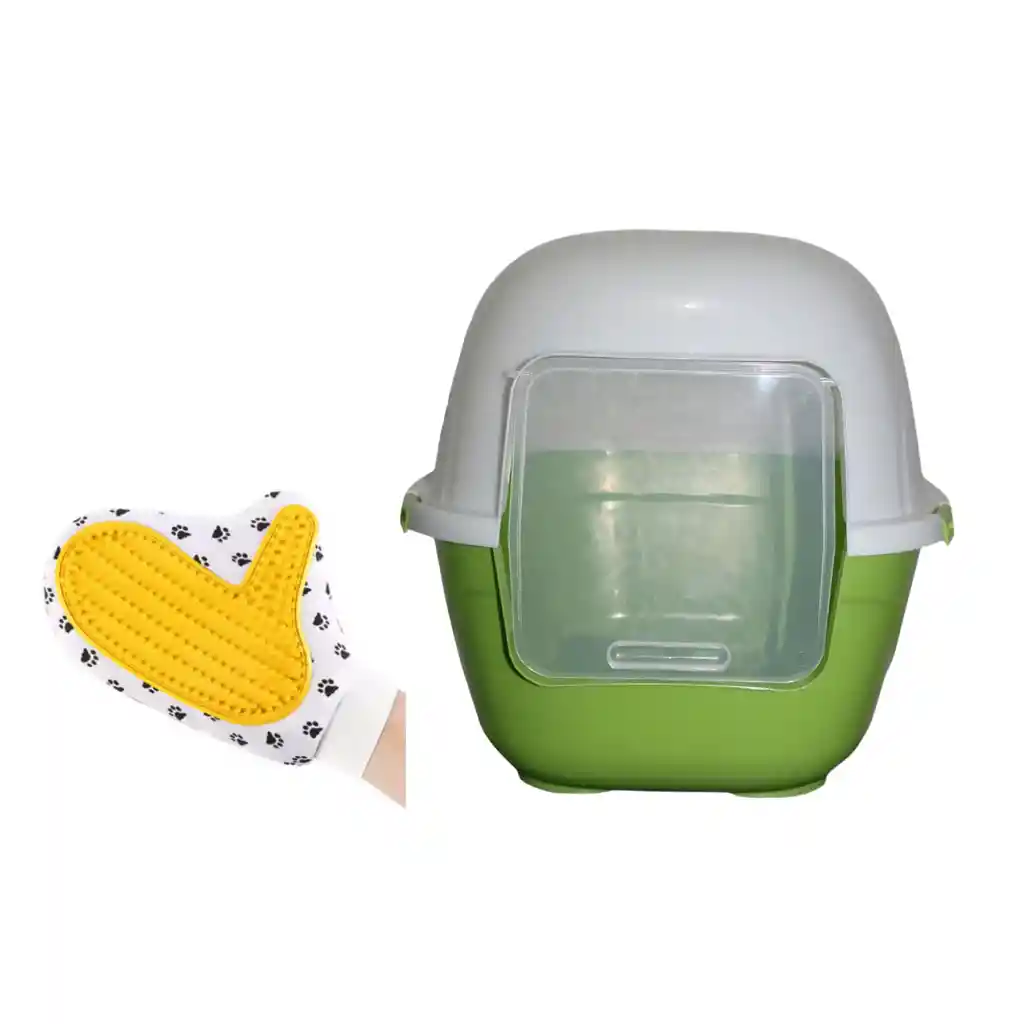 Contiene 1 Baño Grande Sin FIltro para Gatos 1 Guante cepillo Masajeador Baño Arenero pata gatos Este tipo de baño iglu es ideal para que sus gatos entre a hacer sus necesidades de manera fácil, al ser un baño cerrado retiene gran parte del olor, tiene una puerta amplia para que el gato pueda entrar y salir sin ningún problema, tiene un amplio espacio interior Al momento de la limpieza se deben retirar los seguros para retirar la arena. Etapa : Cachorros y Adultos Material : Plástico Color: Verde Tamaño del Baño Profundidad: 51 Cm Alto: 44 Cm Ancho 42 Cm Tiene Manija Cuatro seguros Tamaño de la Puerta Ancho: 22 Cm Alto: 22 Cm Posición de la puerta, desde el suelo hasta la parte inferior de puerta Para el Grande 11.5 cm