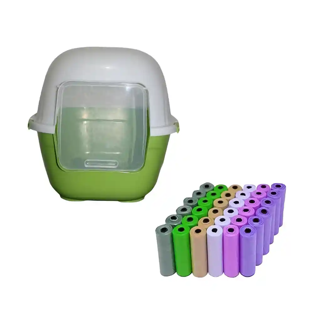 Baño Arenero GRANDE para gatos Mas 50 Rollos Mas Pala Este tipo de baño iglu es ideal para que sus gatos entre a hacer sus necesidades de manera fácil, al ser un baño cerrado retiene gran parte del olor, tiene una puerta amplia para que el gato pueda entrar y salir sin ningún problema, tiene un amplio espacio interior Al momento de la limpieza se deben retirar los seguros para retirar la arena. Etapa : Cachorros y Adultos Material : Plástico Color: Morado Tamaño del Baño Profundidad: 51 Cm Alto: 44 Cm Ancho 42 Cm Tiene Manija Cuatro seguros Tamaño de la Puerta Ancho: 22 Cm Alto: 22 Cm
