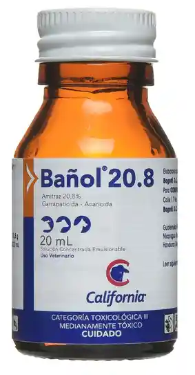 Composición Cada 100 mL contiene: Amitraz 20,8 g Excipientes c.s.p. 100 mL Indicaciones Para el control de garrapatas del ganado bovino (Rhipicephalus (Boophilus) microplus y Amblyomma cajennense), contra piojo (Linognathus vituli y Damalinia bovis). Dosis y administración En bovinos, dilución 1:1000, mezclar 1 mL / L de agua (a 208 ppm), bañar los animales usando 1 L de dilución por cada 100 kg de peso animal, por aspersión con bomba baña ganado o de espalda. Tiempo de retiro Carne: 14 días Leche: 24 horas Precauciones No utilizar en equinos, ni en baños de inmersión. Manténgase fuera del alcance de los niños. Consérvese en su empaque, en lugar fresco, seco y protegido de la luz, a temperatura in