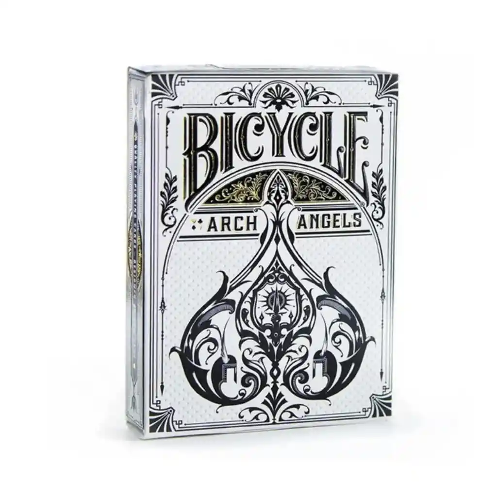 Bicycle Archangels Baraja Bicycle de 54 cartas especiales de doble cara sin dorsos. Las barajas Bicycle están impresas por la prestigiosa U.S. Playing Card Company. Sus estándares de calidad son muy elevados se caracterizan por su papel especial con textura de lienzo que forma un cojín de aire entre las cartas para obtener extensiones y abanicos perfectos y sus acabados en barniz satinado que alargarán la vida de tus cartas manteniéndolas siempre como el primer día. Gracias a su precio y a su gran calidad son ideales para la cartomagia por eso se las conoce como las barajas de mago por excelencia. Con una gran variedad de diseños y estilos Características: Altura: 9.0 cm Ancho: 6.5 cm ¡Cartas Bicycle, el mejor pasatiempo!