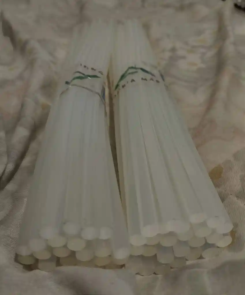 Silicona en barra transparente delgada para pistolas de calor, el tamaño de la pistola para usar estas barras es estándar Diámetro: 7 mm Largo: 30 cm Cantidad: 10 barras de silicona delgadas aplicación: Industria, casa, manualidades, multiusos Material: pegamento termo fusible de poliéster