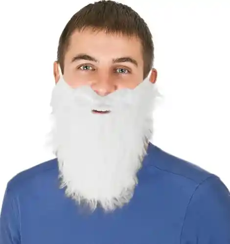 Barba Falsa Blanca Con Bigote – Pelo Facial De Franela Para Disfraz Halloween