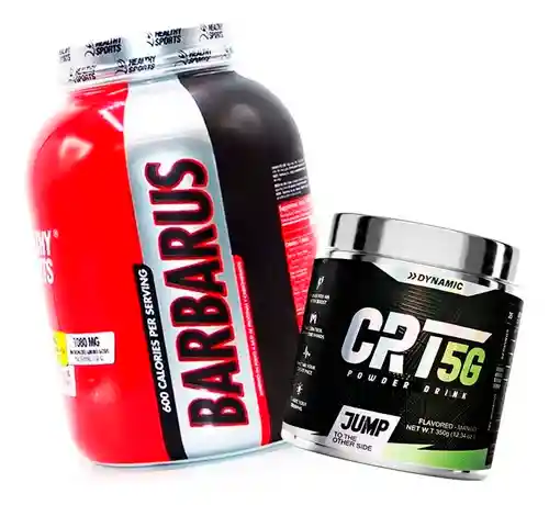 Recibirás Barbarus 4 Libras + Pre-entreno CRT5G Dynamic 35 Servicios. BARBARUS HEALTHY SPORTS Es un alimento en polvo a base de proteínas y carbohidratos con un alto contenido de carbohidratos para lograr los objetivos deseados de aumento de masa muscular y subir de peso. Más específicamente un Mass gainer, un ganador de masa que trabaja distinto a la proteína y se obtienen diferentes resultados. 600 calorías. 60 g. de proteína. 1360 mg. de aminoácidos. - 600 calorías. - 60 g. de proteína. - 1360 mg. de aminoácidos. - 740 mg. de mezcla de creatina. ¿CÓMO CONSUMIRÑO? para óptimos resultados para mayores de 18 años: Mezclar 1 porción (150g = 3 dosificadores) con 16 oz. de agua fría o leche. Para asegurarte de que estás adquiriendo un producto auténtico, verifica lo siguiente: el tarro de CRT5G tiene una contramarcación en la parte inferior, el scoop también está contramarcado y cuenta con un sello de seguridad, no un sticker. ¡Elige siempre la originalidad y la calidad de CRT5G! Contenido Neto: 350g Cantidad por porción: 10g Servicios: 35 Registro INVIMA: RSA-0026309-2023 Registro FDA: 18732517050 MATERIA PRIMA IMPORTADA. Laboratorio autorizado: 3Q S.A.S Sabor: Mango PRE-WORKOUT CRT5G POWDER DRINK Idealiza tu rendimiento en cada desafío Prepárate para superar tus límites con CRT5G, el pre-entreno que transforma tu energía, concentración y resistencia. Con una fórmula avanzada, CRT5G está diseñado para adaptarse a tus necesidades, ya sea para estudiar, trabajar o rendir al máximo en tu entrenamiento físico. Su delicioso y refrescante sabor a mango ofrece una experiencia única, ligera y sin causar sequedad, brindándote hidratación constante mientras te impulsa hacia tus objetivos. Componentes clave de CRT5G - Beta-Alanina (1600 mg): Aumenta la resistencia muscular y reduce la fatiga. - Creatina (L-Glicina, L-Arginina, L-Metionina – 1980 mg): Mejora la fuerza, la potencia y el rendimiento físico. - Cafeína (200 mg): Te da el enfoque y energía para superar cualquier reto. - Citrulina (500 mg): Favorece la vasodilatación y el aumento de la circulación sanguínea, mejorando tu rendimiento. Tecnología 5G Micronizada: La avanzada tecnología 5G de CRT5G permite una disolución más rápida y una absorción óptima en tu organismo. Gracias a su formulación micronizada, obtendrás todos los beneficios de manera más eficiente, asegurando resultados rápidos y duraderos. Fases de uso: 1. Idealize Your Triumphs: Perfecto para aquellos que buscan concentración para el trabajo, estudio o ejercicio ocasional (1-2 días por semana). Se recomienda tomar 1 scoop (5g) para mantener un enfoque claro y energía sostenida. 2. Take Control with Your Hands: Para deportistas comprometidos que entrenan de 3 a 4 días a la semana. Toma 2 scoops (10g) para mejorar tu rendimiento físico y mental con cada entrenamiento. 3. Maintain Your Expert Pace: Para aquellos atletas que mantienen un ritmo de entrenamiento experto, entrenando de 5 a 6 veces por semana. Disfruta de 3 scoops (15g) para mantener la intensidad y lograr tus metas de alto rendimiento. 4. It Gives You an Extra Boost: Diseñado para atletas de alto rendimiento que entrenan de 6 a 7 días a la semana. Toma 4 Scoops (20g) Si necesitas un impulso extra en cada sesión, CRT5G te lo proporciona con una fórmula potente que te ayuda a dar lo mejor de ti. IMPORTANTE: Todos nuestros productos son originales y certificados con registro INVIMA, directamente desde el laboratorio, sus fechas de vencimiento no son próximas, nuestros productos son totalmente nuevos. Puedes visitar nuestra tienda aquí en rappi y encontrar más de nuestros combos
