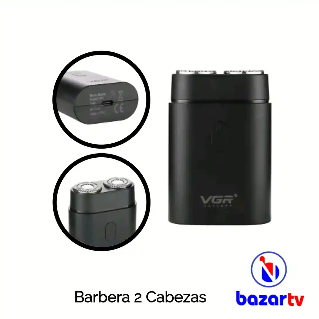 Afeitadora 2 cabezas de uso personal, recargable incluye: cargador, brocha limpieza, guia instructiva