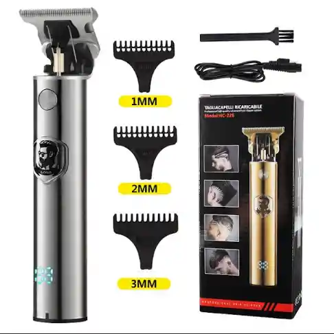 Características: Características: 100% nuevo y de alta calidad Poco Ruido: con el diseño profesional de la estructura de amortiguación interna, reduce en gran medida la vibración y el ruido causados por el funcionamiento a alta velocidad y hace que su corte de pelo sea más cómodo, también puede hacer que los niños y bebés ya no tengan miedo a los cortes de pelo, lo cual es muy adecuado para uso familiar. Es adecuado para hombres/mujeres/niños en hogares y salones. El juego de cortapelos te permite recortar sin salir de casa. La cortadora de pelo está equipada con un cable de carga USB, que te permite cargar cómodamente tanto si estás en casa como de viaje. Las cuchillas tienen un suelo de precisión para mantener una nitidez más larga, proporcionar precisión de corte de pelo de alto rendimiento, cortar el cabello de manera limpia y ordenada, y son perfectas para varios peinados y bigote. Se puede utilizar en cualquier ocasión, a tu padre, marido o novio le encantará este recortador de cabello ideal. Recomendaciones: Evita el agua: La humedad puede hacer que las cuchillas, el motor o los mecanismos internos se oxiden y puedan llegar a que el aparato deje de funcionar. Quita el cabello de las cuchillas y la parte externa con un cepillo Limpia y lubrica las cuchillas con regularidad Especificaciones Poder: 10W Método de carga: cable de datos USB Cable USB: 3V 1-2A Batería: batería de litio Material de cuchilla: acero Especificación: Material: Metal Color: Dorado-negro / plateado-negro / Dorado / Plateado. Tamaño: aprox. 15 × 4 × 2,8 cm Tu compra Incluye: 1 recortadora de pelo 1 pincel 1 Cable de carga USB Peine límite 3x 1 Protector de cabezal de corte
