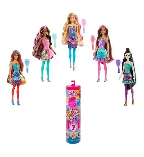 Las muñecas Barbie® Color Reveal ™ brindan una experiencia de desempaquetado llena de sorpresas: ¡siete de ellas! Una muñeca con un estilo de fiesta brillante y en tono joya está garantizada, ¡pero el aspecto de cada muñeca sigue siendo un misterio hasta que se revela! El empaque es parte de la diversión: tire de la tira para quitar la capa exterior y revelar un tubo transparente. En el interior hay una misteriosa muñeca Color Reveal ™ con estampado de confeti plateado metálico y colorido y cuatro bolsas que esconden sorpresas en el interior. Quítelos todos y llene el tubo con agua tibia, luego inserte la muñeca y gírela. El agua cambia a un color plateado metálico, y cuando se saca la muñeca, se revelan sus rasgos. Cada muñeca tiene una combinación diferente de color de ojos, peinado, tono de piel, corpiño brillante y piernas moldeadas con purpurina, pero las sorpresas continúan ... abre las bolsas para descubrir una falda con volantes, un par de zapatos, aretes de purpurina y un cepillo en forma de corazón. ¡esponja! Los efectos de cambio de color en el cabello, la sombra de ojos y los labios de las muñecas se suman a la sorpresa y la diversión. Cada serie tiene un tema único: estas muñecas Color Reveal ™ están listas para celebrar con estilo con un estilo de fiesta. Utilice el tubo para almacenar estos y otros favoritos. ¿Qué muñeca revelarás? ¡Los niños pueden coleccionarlos para mezclar y combinar accesorios y ampliar las posibilidades! Cada uno se vende por separado, sujeto a disponibilidad. Las muñecas no pueden estar solas. Los colores y las decoraciones pueden variar.Con 7 sorpresas en 1 paquete, las muñecas Barbie® Color Reveal ™ brindan todo tipo de deleites: ¡a los niños les encantará revelar la serie Party!Comience la experiencia de la revelación quitando la capa exterior del empaque, desenroscando la parte superior del tubo y sacando una muñeca parcialmente cubierta con Color Reveal ™ plateado metálico con un revestimiento de impresión de confeti y 4 bolsas decoradas que mantienen el contenido oculto.Llene el tubo con agua tibia, coloque la muñeca dentro y gírela: ¡el agua se vuelve de un color plateado metálico para un efecto mágico!Saca la muñeca para revelar su apariencia: cada muñeca tiene una combinación diferente de color de ojos, tono de piel, corpiño brillante, peinado y piernas coloridas moldeadas con purpurina.Abre las 4 bolsas misteriosas para revelar sus sorpresas: una falda con volantes con un estampado de fiesta, un par de zapatos, aretes de purpurina y una esponja de cepillo en forma de corazón 2 en 1; ¡Guárdalos en el tubo después de jugar!Usa la esponja y el agua helada para una transformación de cambio de color que se puede repetir una y otra vez: ¡transforma el cabello, la sombra de ojos y los labios de la muñeca!Viste y personaliza la muñeca para representar divertidas celebraciones de cumpleaños, bailes y otras historias de fiestas: ¡transforma su apariencia para un momento asombroso!Es un gran regalo para niños de 3 a 9 años, que pueden coleccionarlos para mezclar y combinar accesorios y ampliar las oportunidades de juego.
