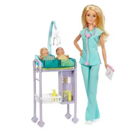 Otras característicasEdad mínima recomendada: 3 añosAltura: 30 cmIncluye accesorios: SíMateriales: PlásticoDescripciónREF DHB63doctora pediatraBarbie Doctora Pediatra PlaySet MattelEsta muñeca Barbie esta lista para ver a los pacientes con un mobiliario para los pacientes, accesorios para llevar a cabo un examen y dos niños que cuidar. Inspirado en el consultorio de un médico típico, los detalles son realistas con toques de estilo clásico. Juega escenas clásicas o imaginar nuevas posibilidades porque con Barbie, puede ser cualquier cosa.Características- Barbie médico bebé está listo para ver a los pacientes con una mesa de examen, los accesorios para el cuidado de los pacientes y dos bebés.- Su set de oficina cumple una doble función con una estación de cuidado que cuenta con dos cunas, un espacio de almacenamiento móvil que se mueve.- Accesorios temáticos incluyen un estetoscopio, dos toallas para bebés, una botella y un cuadro médico.- Matorrales verde azulado y zapatos blancos son un aspecto profesional perfecto.- Auténtico de Mattel.Medidas de la muñeca27 x 5 cmMEDIDAS DEL PRODUCTO32 X 21 X 6 CM
