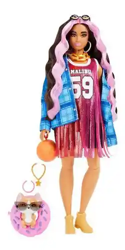 Cuando se trata de moda, las muñecas Barbie® Extra tienen una actitud de “más es más”, cuentan con 15 piezas que incluyen prendas de vestir y accesorios de moda, además de una mascota y sus accesorios. El estilo del peinado de la muñeca Barbie® va a lo grande: su melena extralarga y ondulada está recogida en un peinado medio alto con atrevidos mechones en tono rosa que le enmarcan la cara. Muestra su estilo seguro con una camisa extragrande de franela, un vestido de jersey de básquetbol brillante con flecos y pantalones cortos negros de ciclista. ¡Las muñecas Barbie® Extra están a la moda con colores vivos y causarán una gran impresión! Cada muñeca Barbie® tiene su propio estilo único que es alegre y extravagante. Y sus mascotas, todas diferentes y adorables, ¡también tienen una gran personalidad! La Barbie® Extra les permite a las niñas explorar maneras de expresarse con estilo y les ofrece una elegancia fascinante y una experiencia de juego llena de estilo con muñecas totalmente articuladas. Se divierten con la moda con brillo, ositos de goma, emojis y cabello llamativo, lo que les da un toque EXTRAvagante a donde quiera que vayan. Se venden por separado y están sujetas a disponibilidad. Las muñecas no se pueden mantener de pie por sí solas. Los colores y las decoraciones pueden variar. Más detalles Peso del paquete: 0.325kg Medidas del paquete: 25.4x32.385x6.668cm Modelo: HDJ46 Edad recomendada: 3 años-99 años Incluye: Incluye 1 muñeca Barbie® Extra con ropa y accesorios, además de 1 mascota y piezas adicionales. No requiere baterías ADVERTENCIA: Contiene o puede generar piezas pequeñas que pueden causar asfixia al infante Fabricante: Mattel País de origen: Indonesia El lote está grabado en el producto y varía de acuerdo al día de fabricación