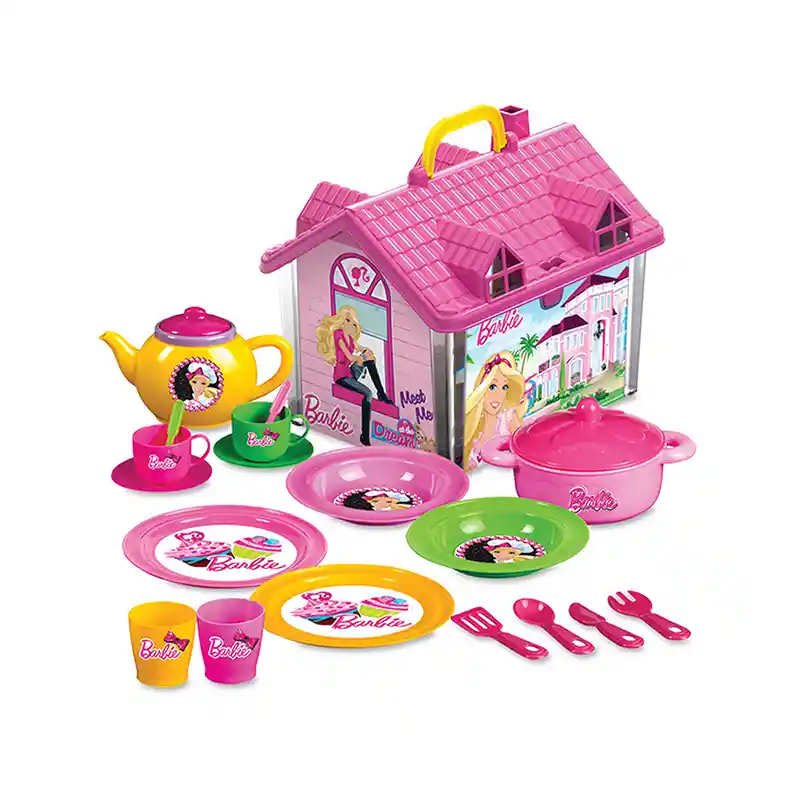 Las más hermosa casa de té que las pequeñas fanáticas de Barbie conocerán y amarán. Compartir un momento agradable en compañía de la familia y sus amigos jamás tendrá precio. Es un extraordinario juguete complementario para los juegos de rol, podrán incluirlo en sus más increíbles historias y roles. Cuenta con: 19 piezas entre ellas; 1 tetera, 2 vasos, 2 posillos, 2 platos hondos, 2 platos pandos y muchos implementos más para que puedan divertirse jugando con ellos. Contribuye con el desarrollo de la creatividad, la imaginación y la estimulación de la umaginación y comunicación además de otras habilidades psicomotoras. Número de Piezas: 19 Color: Rosado Referencia: 911_517 Tamaño: 28 x 22 x 21 Cms. Edad: recomendada a partir de 3 años. Material: Plástico. Marca: Dede