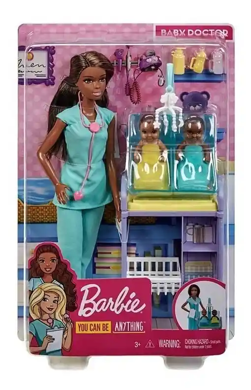 Regalo óptimo para niñas y niños de más de 3 años Barbie pediatra incluye lo necesario para recrear el ambiente de una consulta de pediatría con los adorables bebés pacientes y las piezas de juguete para realizar las examinaciones y los cuidados que necesitan La muñeca barbie pediatra está lista para cuidar de sus pacientes bebés, vestida con su traje de médica y su estetoscopio alrededor del cuello; barbie anota en la gráfica lo sanos que están los bebés