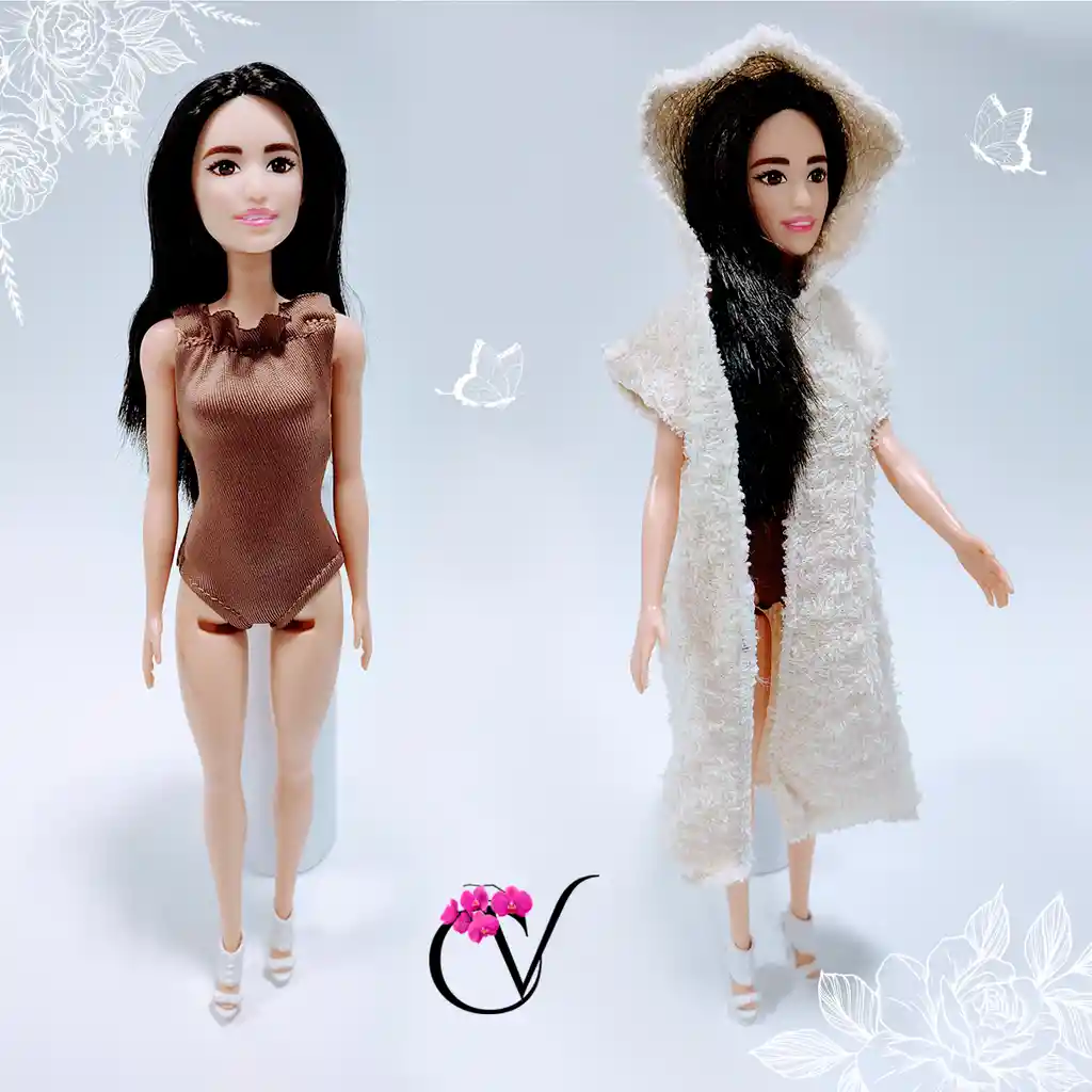 Diseñado para: Barbie estándar Material: el vestido de baño es en lycra y la toalla en tipo toalla absorbente.⚠️¡Fabricamos solo uno!, no vas a encontrar uno igual a este hermoso vestido de baño ¡Único y especial! igual que tú 💜⚠️ 📍La muñeca no se vende 📍Los accesorios no se venden 💡Recuerda que si quieres mas detalles nos puedes escribir por cualquier canal o a nuestro WhatsApp 313 2511730 😉, estamos para servirte. #ApoyaLoColombiano 💛💛💙❤️