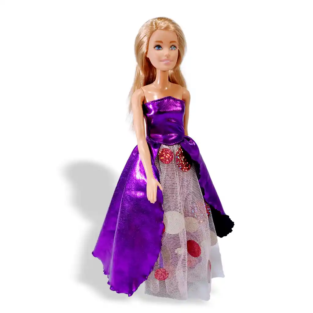 Estilo único y brillo, te presentamos este hermoso vestido, perfecto para esas ocasiones especiales. ⚠️¡Fabricamos solo uno!, no vas a encontrar uno igual a este hermoso vestido de baño ¡Único y especial! igual que tú 💜⚠️ Diseñado para: Barbie estándar Material: Confeccionado en lame brillante, y mallita con bolitas. Cierre con velcro. 📍La muñeca no se vende 📍Los zapatos no se venden 💡Recuerda que si quieres mas detalles nos puedes escribir por cualquier canal o a nuestro WhatsApp 313 2511730 😉, estamos para servirte. #ApoyaLoColombiano 💛💛💙❤️