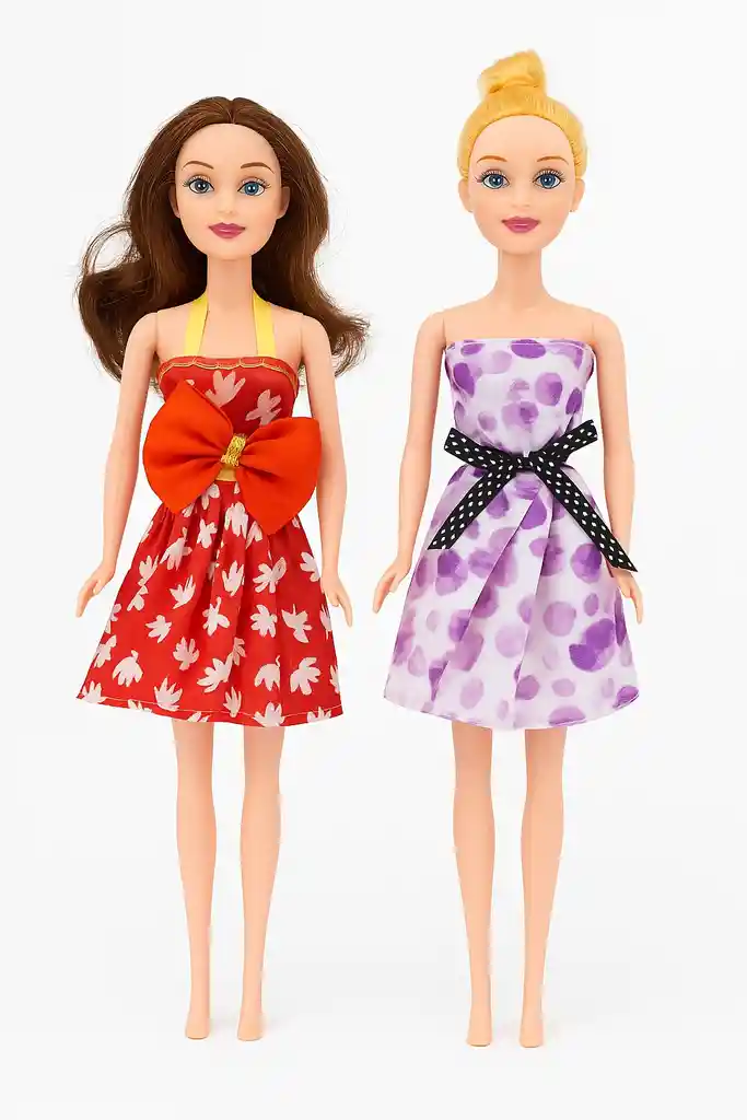 Estas muñecas son el duo perfecto para jugar entre amigas o familia, con sus lindos vestidos dejaran a todo encantados y por su tamaño, podrás lleva rla diversión a todos lados. Ambas muñecas tienen hermosos ojos azules que añaden un toque de encanto a su apariencia. Una muñeca luce un hermoso cabello castaño, mientras que la otra muestra un cabello rubio deslumbrante. Incluye dos barbies en el mismo paquete Ropa Medidas 33cm alto x 8 cm ancho