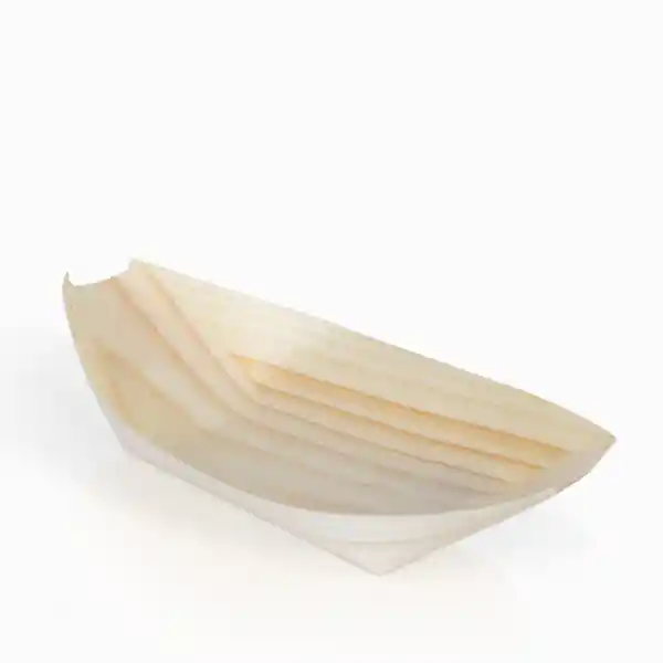 Contiene 20 Unidades. Barca Desechable en Madera Ideal Para Servir Pequeños Bocados También Complementa la Decoración.