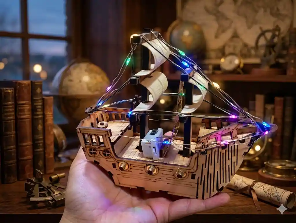Barco de madera luminoso, ideal para decorar ese espacio tan especial y recordar a Santa Marta con estilo.