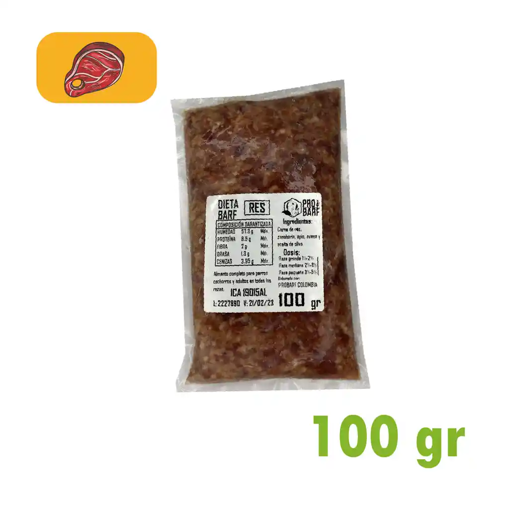 Unidad de BARF x 100 Gramos, sabor res **Este producto debe permanecer congelado y solo se descongela la porción que vaya a ser utilizada en el momento.**
