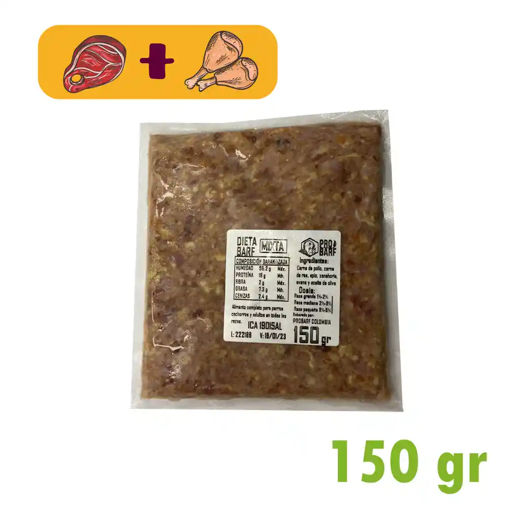 Unidad de BARF x 150 Gramos, sabor mixta **Este producto debe permanecer congelado y solo se descongela la porción que vaya a ser utilizada en el momento.**