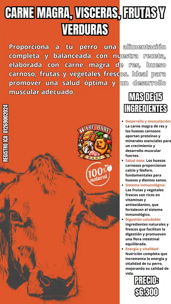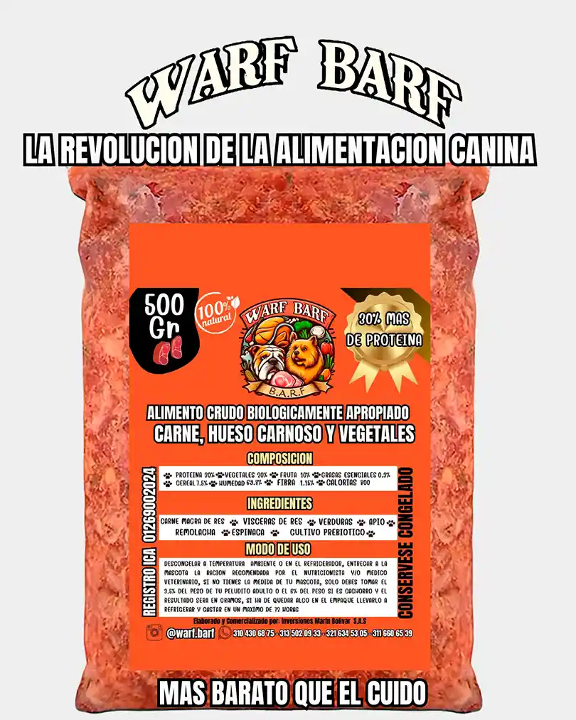 Dale a tu peludo una alimentación natural, saludable y deliciosa con nuestra fórmula BARF de carne. Hecha con ingredientes frescos y de alta calidad, esta dieta está diseñada para respetar su naturaleza y potenciar su bienestar. ✨ Beneficios del sabor carne: ✅ Alta palatabilidad: irresistible para perros de todas las edades. ✅ Rico en proteínas: ayuda a fortalecer músculos y mantener energía. ✅ Favorece la digestión: ingredientes naturales sin aditivos artificiales. ✅ Brillo y salud en el pelaje: nutrientes esenciales que mejoran su apariencia y vitalidad. 🥩 ¡Nutrición ancestral con un toque gourmet! Cuida su salud con el mejor alimento BARF.