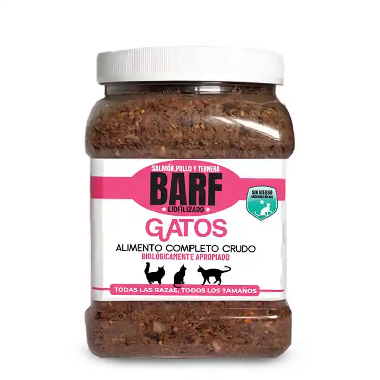 ¿Por qué elegir nuestro BARF liofilizado en polvo para gatos? Máxima personalización: Crea comidas caseras adaptadas a las necesidades específicas de tu gato. Completa y balanceada: Contiene todos los nutrientes esenciales para una vida sana y activa. Fácil de preparar: Solo agrega agua y mezcla. Versátil: Puedes combinarlo con otros ingredientes frescos para crear una variedad de recetas. Salud intestinal: Mejora la digestión y reduce el riesgo de alergias alimentarias. Piel y pelaje saludables: Promueve un pelaje brillante y una piel sana. Energía y vitalidad: Proporciona la energía que tu gato necesita para jugar y explorar. Beneficios del Proceso de Liofilización: Conservación de nutrientes: El proceso de liofilización conserva todos los nutrientes esenciales, vitaminas y minerales. Seguridad alimentaria: Elimina cualquier riesgo de contaminación bacteriana, garantizando una alimentación segura. Sabor y aroma naturales: Preserva el sabor y aroma originales de los ingredientes frescos. ¡Dale a tu gato la mejor nutrición! Con nuestro BARF liofilizado en polvo para gatos, tendrás el control total sobre la alimentación de tu gato, asegurando que reciba los mejores nutrientes y una dieta personalizada. ¡Descubre la diferencia que puede hacer en la vida de tu felino!