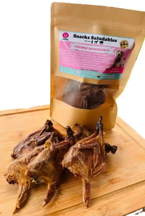 Codorniz deshidratadas * carne magra fácil digestión y alto contenido proteico * contiene hierro, potasio, fósforo, sodio, magnesio y selenio * contiene vitamina B6 la cual permite mantener un sistema inmunológico sano y fuerte, debido a su protección de anticuerpos * contiene vitamina B3, está contribuye a un mejor metabolismo, aportando asi al sistema nervioso y digestivo ideal para corregir el sobre peso y aumentar la masa muscular