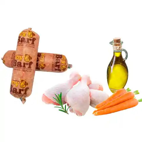 Alimento natural Barf Pollo. compuesto por pollo. verduras. fibra y aceite de oliva. unidad por 400gr