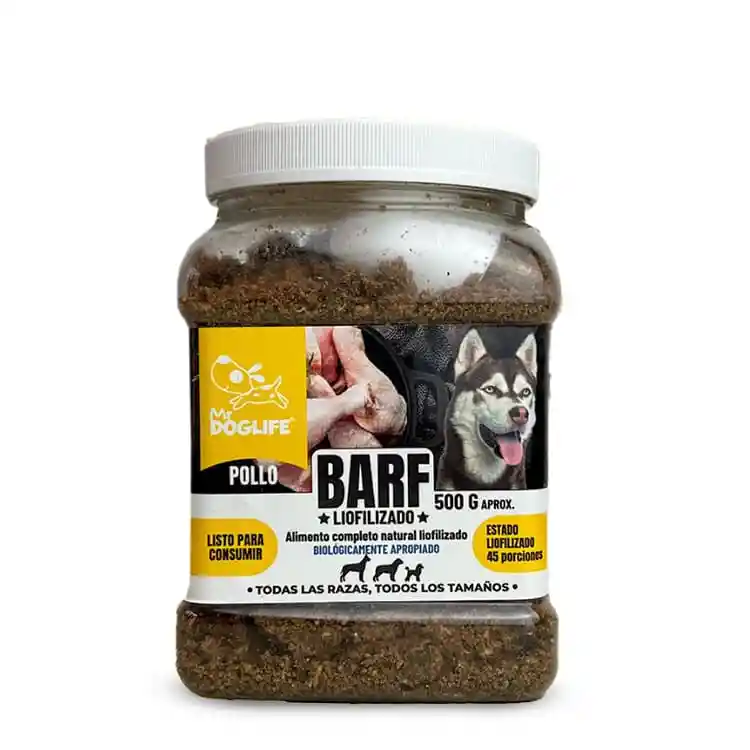 Alimento BARF liofilizado en polvo de pollo para perros, 100 % natural, sin conservantes y apto para todas las razas y edades desde los 2 meses. Ideal para quienes buscan una nutrición completa, práctica y saludable. No necesita refrigeración y su proceso de liofilización preserva todos los nutrientes, garantizando una alimentación segura y balanceada