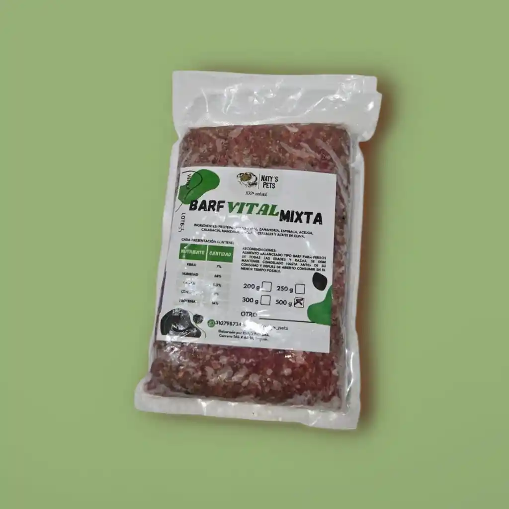 Dieta balanceada sabor mixto (pollo y res) para perros. Contiene todos los nutrientes necesarios, proteína, verdura, frutas y cereales. Reemplaza el concentrado por una alimentación natural. Alimento viene congelado y se debe mantener congelado hasta que se vaya a consumir. Presentación de 500 gramos. Se debe descongelar para suministrar.