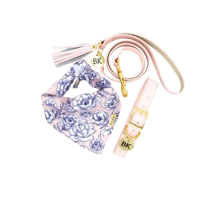 Set Incluye: Collar Rosado 1 Und + Correa Rosada 1 Und + Bandana White 1 Und + Roses Diseñada Para Las Princesas de la Casa; Dulces y Delicadas. Talla Ideal Para Cuellos Entre 43 a 51 cm Largo.