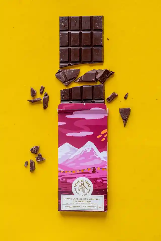 En honor a uno de los lugares más emblemáticos del país, la mina de sal de Nemocón, tenemos la barra de sal que hace alusión a aquella emblemática mina, la combinación del chocolate y la sal genera nuevas sensaciones en el paladar. En el diseño se pueden apreciar dos montañas que hacen alusión y resaltan el ingrediente principal de esta barra, la sal. Origen: Meta Perfil del sabor 80%: Afrutado, con notas de frutos rojos como la cereza, fresa y con notas de vino tinto. Acidez: Media-alta Cuerpo: Sedoso