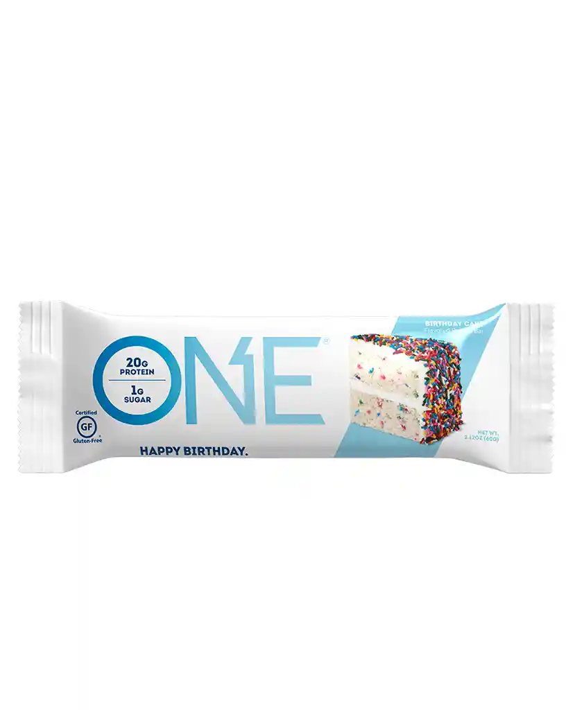 Barra de proteína birthday cake Libre de Gluten Descubre el equilibrio perfecto entre sabor y nutrición con las Barras de Proteína ONE sin gluten.