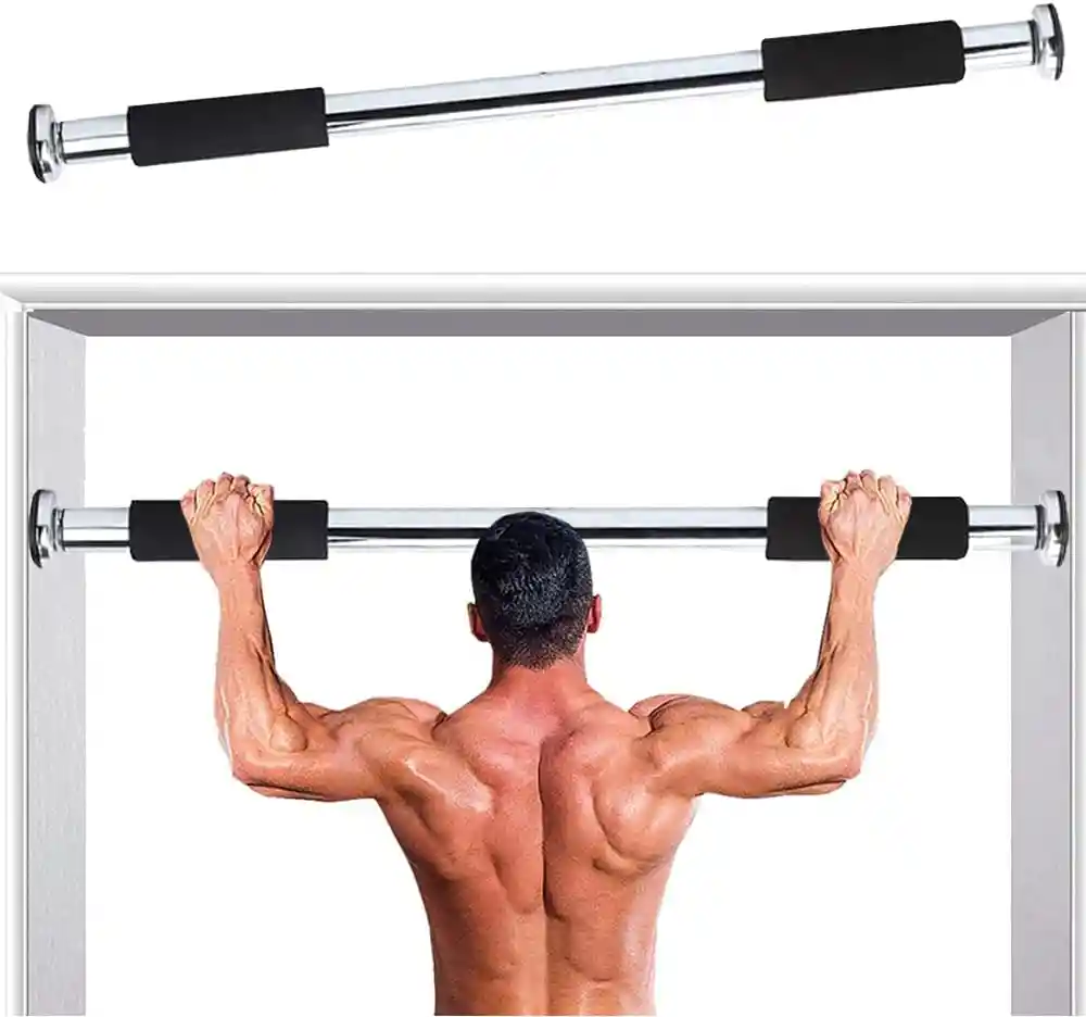 Esta barra de puertas dominada es ideal para hacer ejercicio y ejercitarse en casa, son para uso doméstico premium.Ideal para el fortalecimiento muscular de espalda, dorsales, hombros y bíceps, antebrazo y abdomen. Estas barras son elaboradas en hierro de alta resistencia. Su agarre se caracteriza por sus sistema antideslizante. Sistema de ajuste para el marco de la puerta en Madera o Metal, de 62 a 100 cm. Resiste un peso máximo de usuario de 100 kg. Características Fortalece los músculos de la espalda, dorsales, hombres, bíceps, antebrazo y abdomen Estructura de hierro de alta resistencia Agarre con sistema antideslizante Resistente y Duradero: La barra está hecha de acero al carbono / material galvanizado, el grosor del tubo de acero es de 1,5 mm, y el diámetro del tubo de acero es de 30 mm. Es duradero y no se deforma fácilmente. El mango de espuma de algodón es especialmente cómodo y minimiza la fatiga o el dolor de la mano. Carga máxima: 100 kg. Diseño Antideslizante Hexagonal Estable: La barra superior garantiza un diseño de hebilla más seguro y garantiza que la varilla no se salga durante el entrenamiento. Las tapas de goma transparente hexagonales antideslizantes en el lado izquierdo y derecho tienen propiedades antideslizantes más altas, garantizan la estabilidad y evitan que el marco de la puerta deje marcas innecesarias. Palanca Superior Ajustable: La distancia ajustable de la palanca superior es de 60 a 100 cm y es adecuada para la mayoría de entradas estándar. Es muy adecuado para el hogar, garaje u oficina. Por lo tanto, no tienes que ir al gimnasio, especialmente en días lluviosos y nevados, para evitar salir. 2 Métodos de Instalación: 1. Solo tarda unos minutos en completar la instalación y retirarla del marco de la puerta. Hay dos dispositivos antibloqueo en cada lado de la barra de tracción. Simplemente gira la barra central para empujar el marco de la puerta. 2. Asegura el marco de la puerta con tornillos.Alfombrillas de PVC antideslizantes en ambos lados para proteger el marco de grietas y evitar daños causados por caídas repentinas. Ampliamente Utilizado: Cuando no utilices la barra de tracción atornillada, puedes ajustar la altura y la posición en cualquier lugar. La barra de dominadas es ideal para una variedad de deportes, incluyendo dominadas, levantamientos de piernas, flexiones, abdominales y otros ejercicios.
