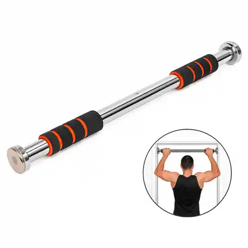 Especificaciones Técnicas Principales Material: Fabricada en acero cromado de alta resistencia para garantizar durabilidad y estabilidad durante el ejercicio. Capacidad de Carga: Soporta un peso máximo de aproximadamente 100 kg. Diseño: Barra recta con agarres de espuma de alta densidad (neopreno) antideslizantes para reducir la fatiga en las manos y mejorar la sujeción. Instalación: Se fija a presión mediante un sistema de rosca telescópica. Incluye topes de goma en los extremos para proteger el marco de la puerta de daños o marcas.