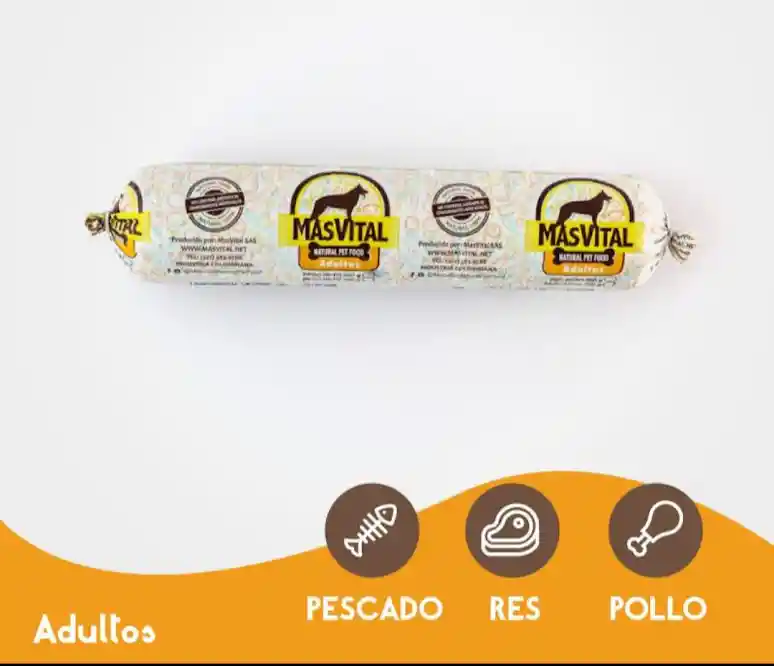 Alimento completo, húmedo, precocido, 100% natural, para perros adultos de todas las razas. A base de mezcla de proteínas frescas de res, pollo y cordero pescado. Reg. ICA 14400AL Composición Garantizada Humedad máxima 55% · Proteína cruda mínima 12% · Grasa mínima 8% · Fibra cruda máxima 3% · Cenizas máxima 11% · Calcio mínimo 1.5% · Fósforo mínimo 1% Ingredientes Carne bovina y/o carne de pollo y/o carne de cordero y/o carne de conejo y/o carne de salmón. Plasma sanguíneo y/o Huevo, arroz y/o avena y/o Almidón de papa y/o Quinua, Arveja y/o Zanahoria y/o remolacha y/o apio y/o espinaca, melaza, Suero seco y/o Yogurt, Grasa de pollo y/o Aceite vegetal Probióticos y prebióticos (Levadura Sacharomyces cerevisiae, oligosacáridos mananos, extracto de yuca schidigera), vitaminas y minerales de origen natural.