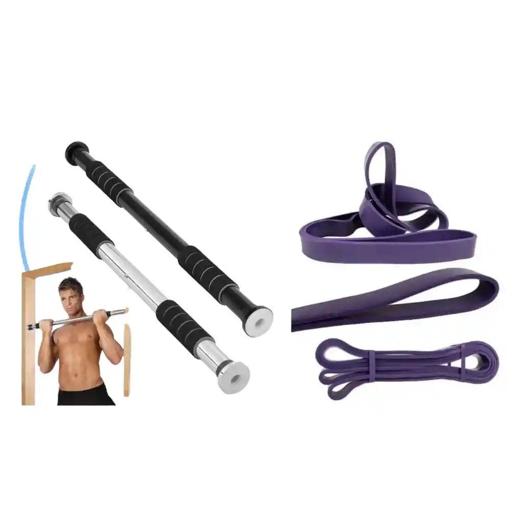 Barra para marco puerta. Hacer dominadas en casa es muy fácil. se expande hasta 120 cm. Incluye banda de poder morada 35-85 lb