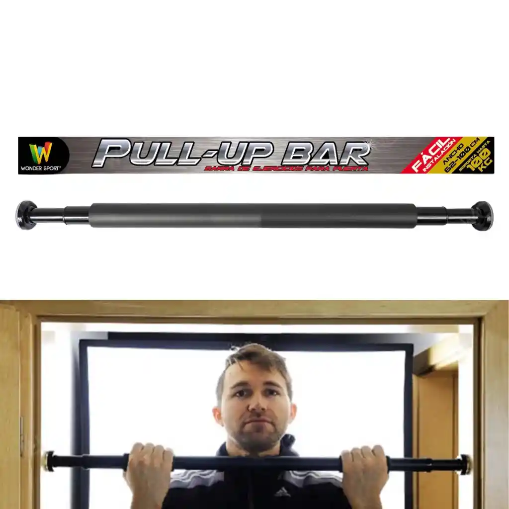 Soporte dominada | Barra puerta | Barra ejercicios Características: Agarre con sistema antideslizante. Estructura en acero de alta resistencia. Sistema de ajuste para el marco de la puerta, de 62 a 100 cm. Incluye tornillos y topes. Peso máximo del usuario: 120 Kg. Beneficios: -Es un producto esencial para el trabajo y fortalecimiento muscular de espalda, dorsales, hombros, bíceps, antebrazo y abdomen. -Se puede usar como empuñadura de empuje, soporte para los pies en las sentadillas, además de todos los ejercicios superiores tradicionales. Barbell Support | Door Bars | Exercise Bars Features: Grip with anti-slip system. High resistance steel structure. Adjustment system for the door frame, from 62 to 100 cm. Includes screws and stops. Maximum user weight: 120 Kg. Benefits: -It is an essential product for the work and muscle strengthening of back, dorsal, shoulders, biceps, forearm and abdomen. -It can be used as a push grip, foot support for squats, in addition to all traditional upper exercises.