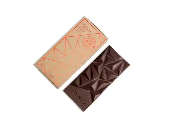 Barra de chocolate semiamargo con nibs de cacao. sin azúcar añadida. endulzada con maltitol. 100g
