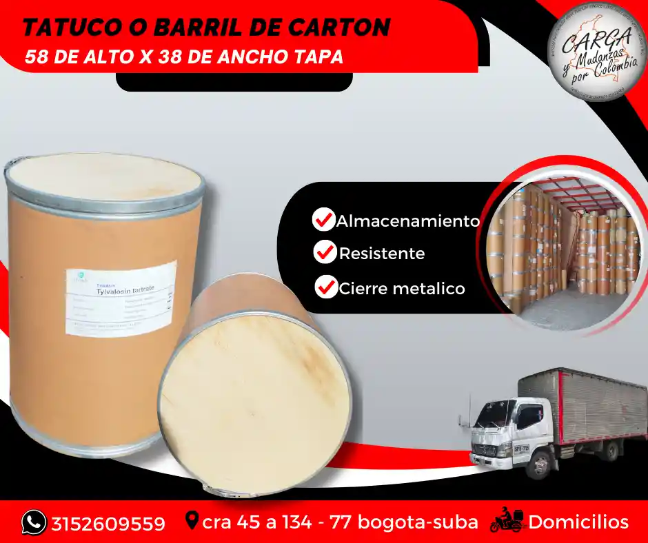 El barril de kraft es un embalaje de cartón, es un cilindro fabricado enrollando en varias capas de kraft. Ideal para el envasado,transporte y almacenamiento de objetos que requieren cierto cuidado por su importancia o fragilidad. - Resistente y amortiguador de golpes que sufran las mercancías u objetos en el transporte o almanecamiento. - Material económico, 100% reciclable, biodegradable y duradero. - Aísla de la humedad, sol y polvo. Medidas: 58 cm de alto x 38 cm de diametro. Alta Calidad - Producto Garantizado. Visítanos: Cr. 45a # 134 - 77 Local Esquina Contáctanos: 315 2609 559 *ASESORIA SIN COSTO POR WHATSAAP*