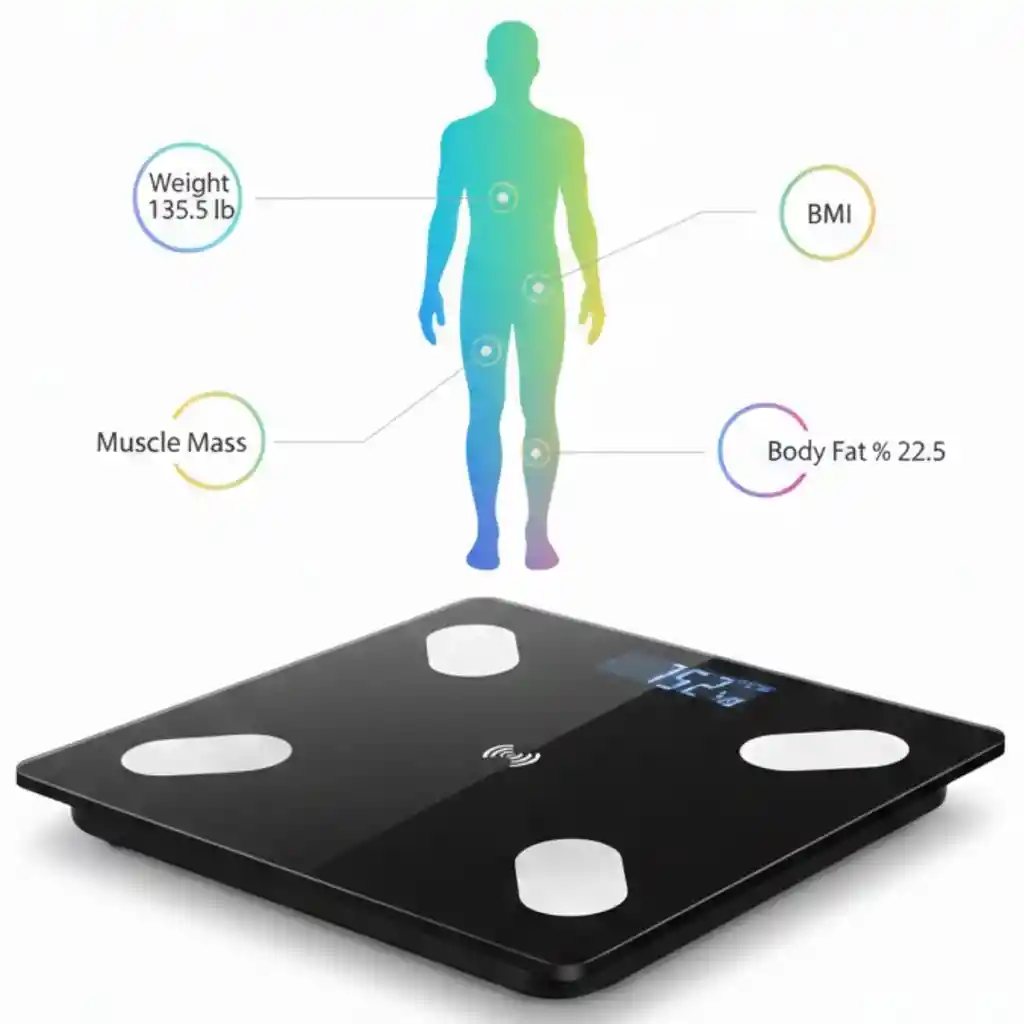 Báscula Digital Inteligente Bluetooth – Control completo de tu bienestar en casa Lleva un seguimiento práctico y detallado de tu estado físico con esta báscula digital inteligente con conectividad Bluetooth. Diseñada para quienes desean monitorear su progreso de salud de forma sencilla, permite sincronizar las mediciones con tu celular mediante aplicaciones compatibles, facilitando el registro y análisis de datos. Equipada con sensores de alta precisión, ofrece mediciones rápidas y confiables de diferentes indicadores corporales. Su diseño moderno con plataforma de vidrio templado brinda resistencia y elegancia, ideal para cualquier espacio del hogar. Su pantalla LED de alta visibilidad muestra los datos con claridad, mientras que el sistema de encendido y apagado automático ayuda a optimizar el consumo de energía. Importante: Este producto funciona con pilas. No es recargable. Características principales • Medición de peso corporal • Cálculo de IMC • Medición de grasa corporal • Registro de masa muscular • Medición de masa ósea • Porcentaje de agua corporal • Edad metabólica • Sensores de alta precisión • Sincronización Bluetooth con apps de salud • Pantalla LED de fácil lectura • Encendido y apagado automático Especificaciones Conectividad: Bluetooth Material: Vidrio templado resistente Alimentación: Pilas (no recargable) Compatibilidad: Android y iOS Uso: Personal y familiar Garantía Garantía de 30 días por defectos de fábrica. No cubre daños por golpes, humedad, desgaste normal o mal uso. Derecho de retracto Aplica derecho de retracto dentro de los tiempos establecidos por ley. El producto debe devolverse en buen estado, sin señales de uso, con empaque y accesorios completos. Los costos de envío por devolución pueden aplicar. Notas • No incluye pilas. • Para obtener mediciones precisas, usar sobre superficie plana y firme. • Las mediciones son referenciales y no sustituyen evaluación médica profesional.